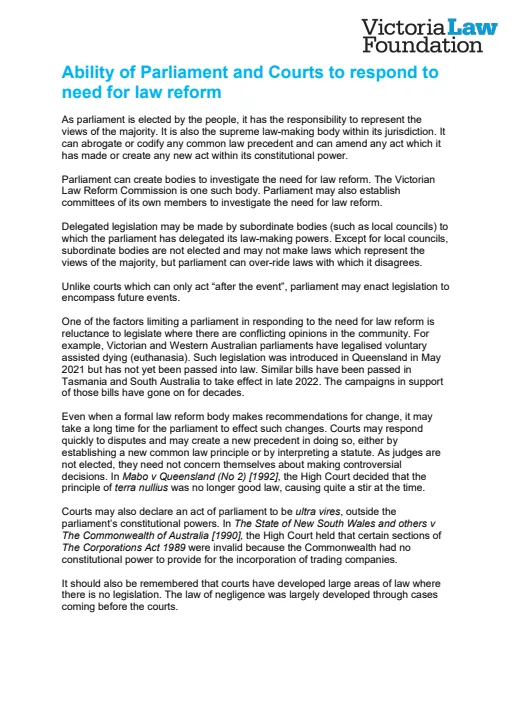 Law Reform in Action: The Role of Parliament and the Courts