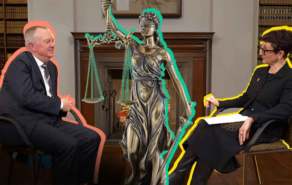 Chief Justice Richard Niall and VLF Executive Director Lynne Haultain in a conversation about the law and the challenges facing justice today.