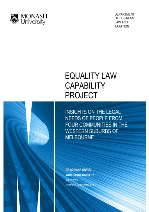 This study examined the legal knowledge, attitudes, capability and needs, with respect to solving legal problems about workplace discrimination or sexual harassment, of people who live, work or study in the western suburbs of Melbourne and identify as belonging to the Vietnamese, Afghan, Indian or South Sudanese communities.